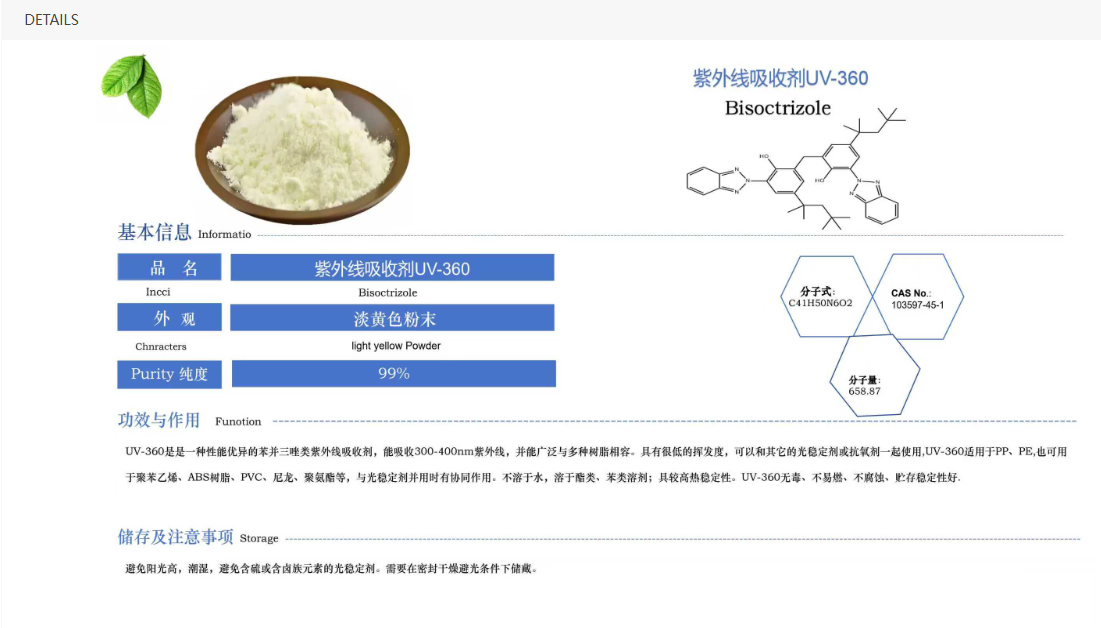 紫外线吸收剂UV-360 含量99% 高分子材料 塑料制品防晒剂 cas103597-45-1