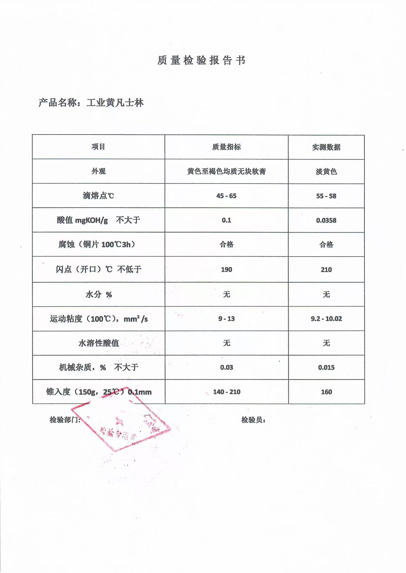熔点:本品的熔点(附录ⅥC三法)为45~60℃。用途:凡士林防水性,用于配制皮肤保护油膏用的原料;化妆品乳膏、香脂化妆油等的配料;纺织工业润滑丝织品用的乳化膏;精密仪器及器械的临时防护。也可用作橡胶制品的软化剂。