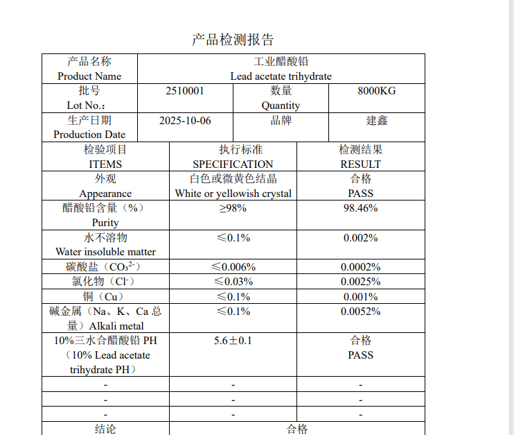 三水乙酸铅 含量98% 白色结晶 抗污涂料 有机合成 铅皂防水 cas6080-56-4