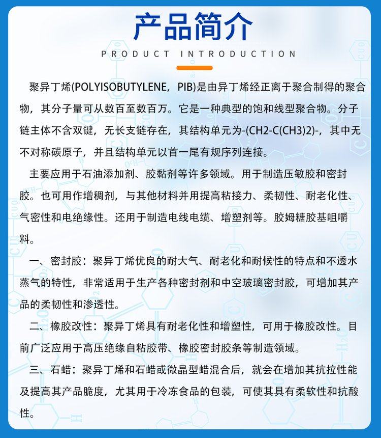 聚异丁烯PIB 分子量1300/2400 玻璃密封胶 橡胶胶粘剂 屋面防漏 cas9003-27-4