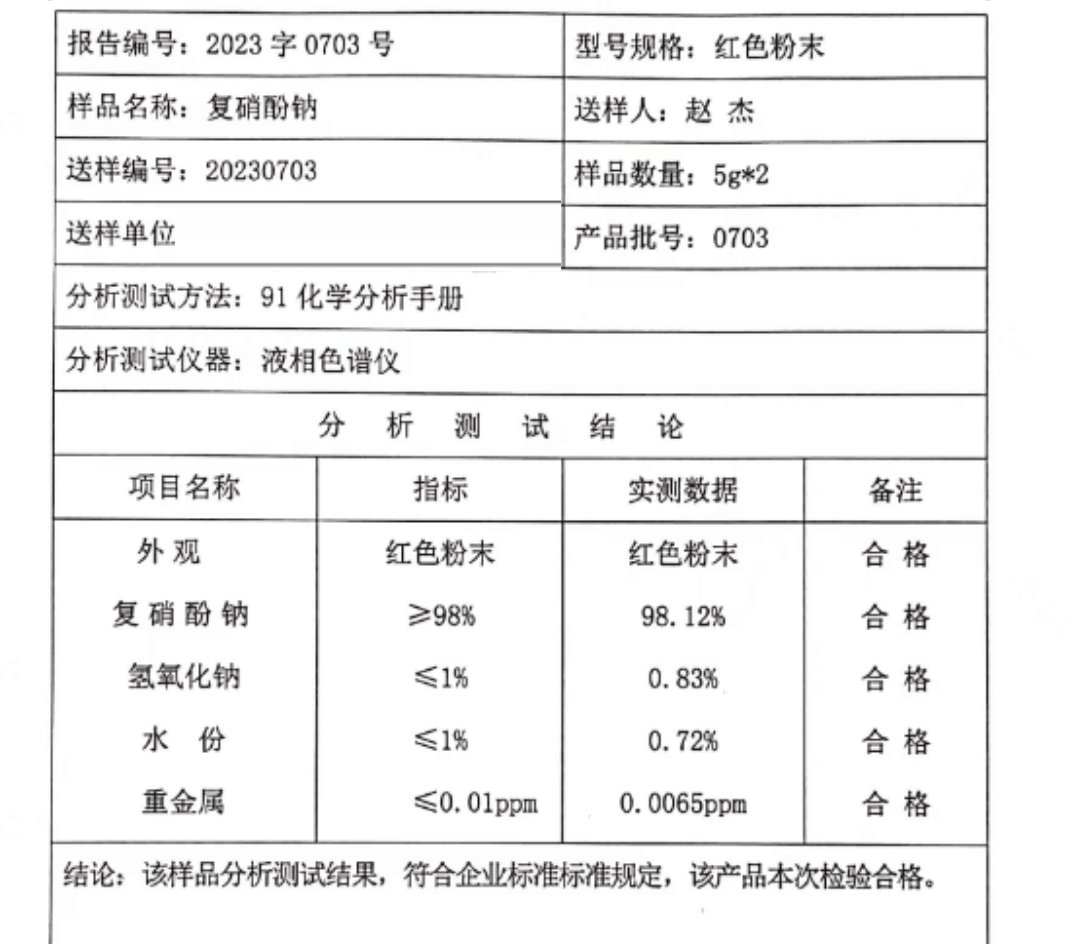 农业级复硝酚钠 原粉98% 橘红色粉末 强力赋活剂 植物生长调节剂