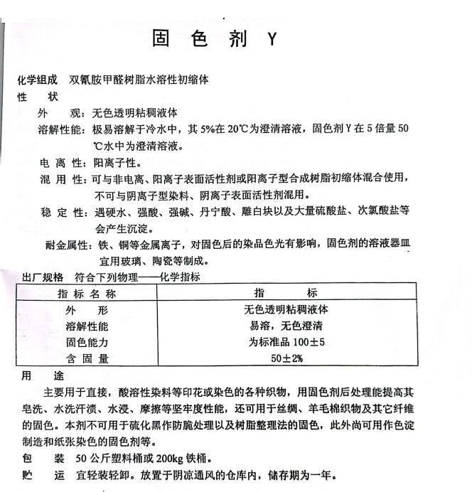 外文名:colorfixingagentY