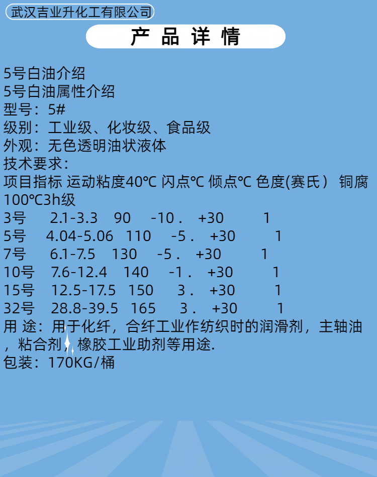 5 号工业白油主要用于