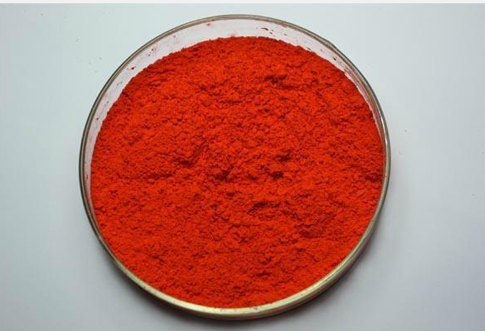 橙色结晶性鳞状体或无定形重质粉末。不溶于水和醇。