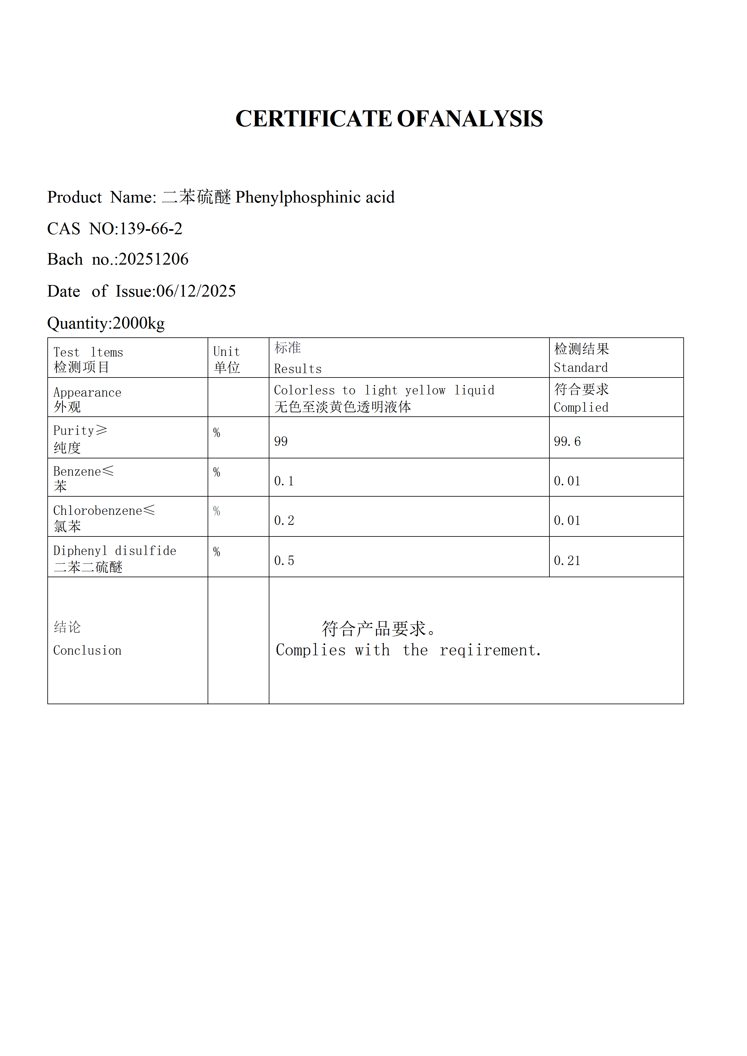 | 包装规格 | 200kg/塑料桶 |