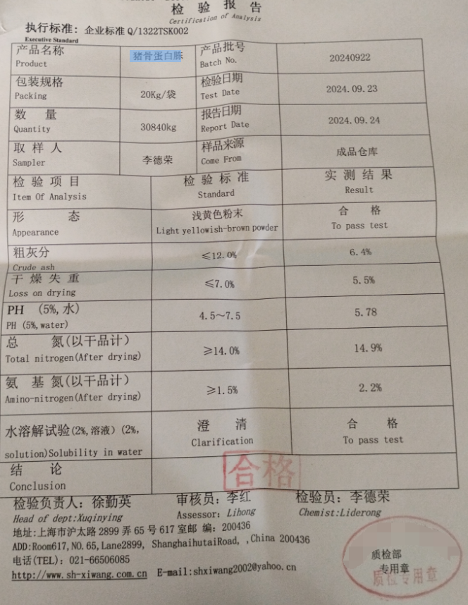 性状:为浅黄色至棕色粉末或颗粒,具有肉味但无腐臭。