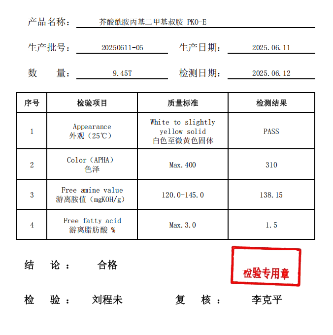 芥酸酰胺丙基二甲基叔胺PKO-E 石油开采酸化压裂稠化剂 石英砂浮选剂 149968-48-9