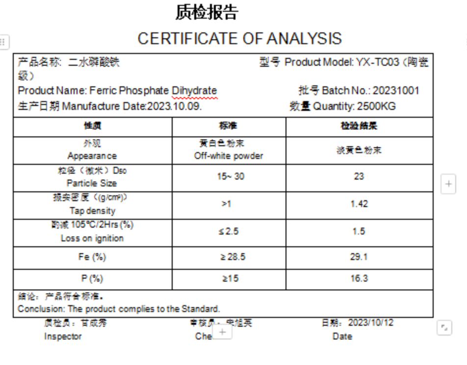 此外,陶瓷级二水磷酸铁通常要求高纯度和细粒度(如300目),以确保釉料的均匀性和烧成质量
