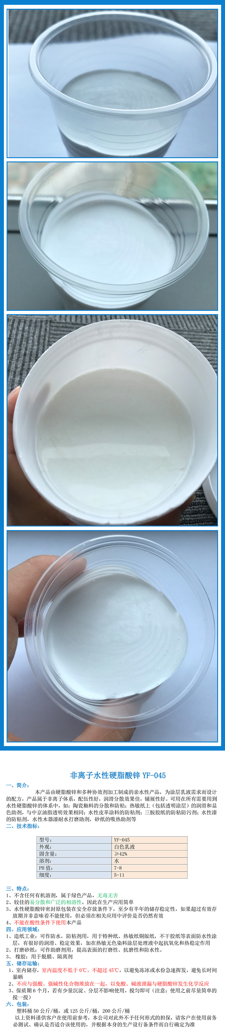 此外,水性硬脂酸锌还可应用于涂布纸、热敏纸、橡胶隔离剂等领域,满足各种特殊需求。