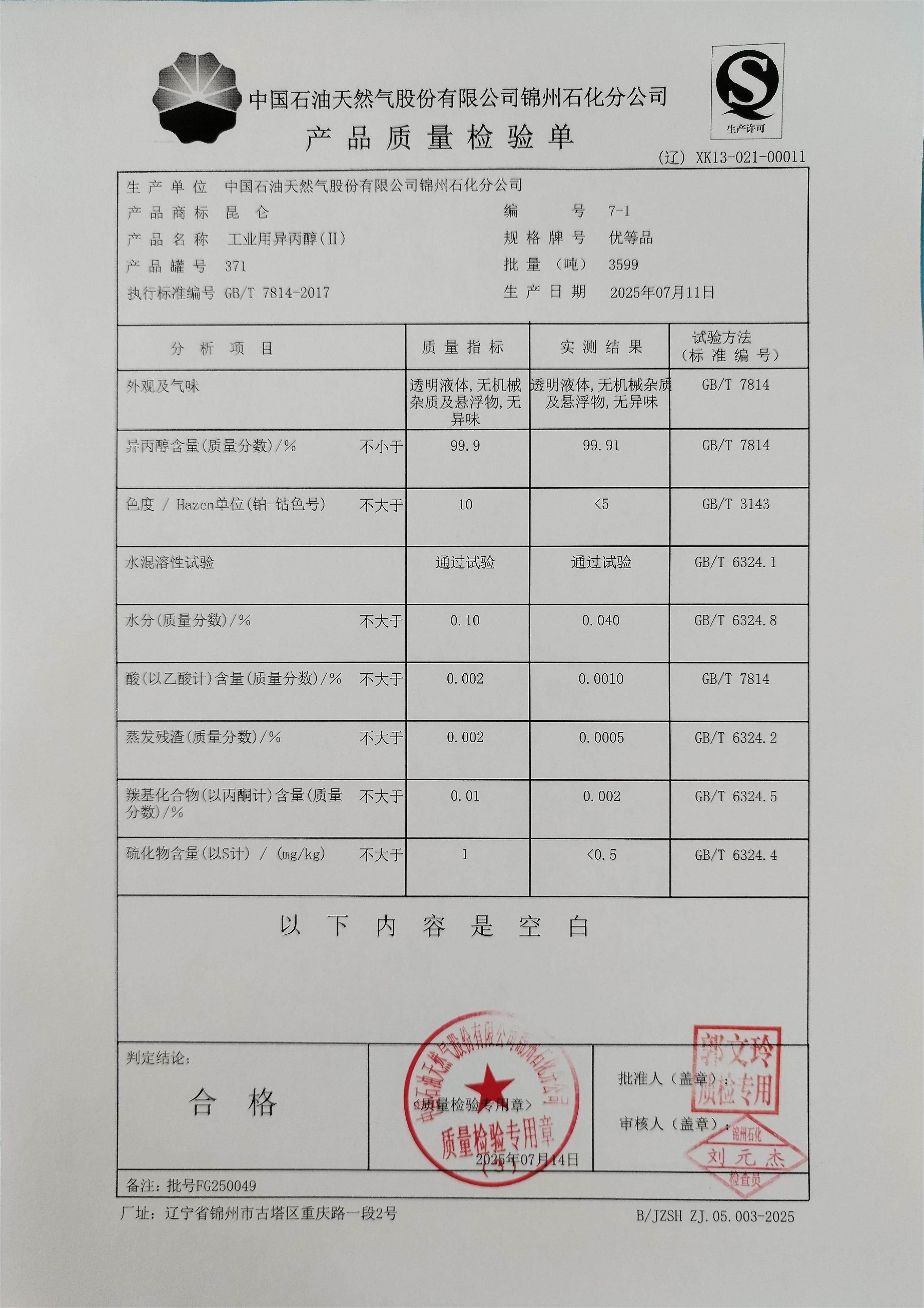 锦州石化工业级异丙醇 含量99.9% 透明液体 电子元件清洗 燃油添加剂 cas67-63-0