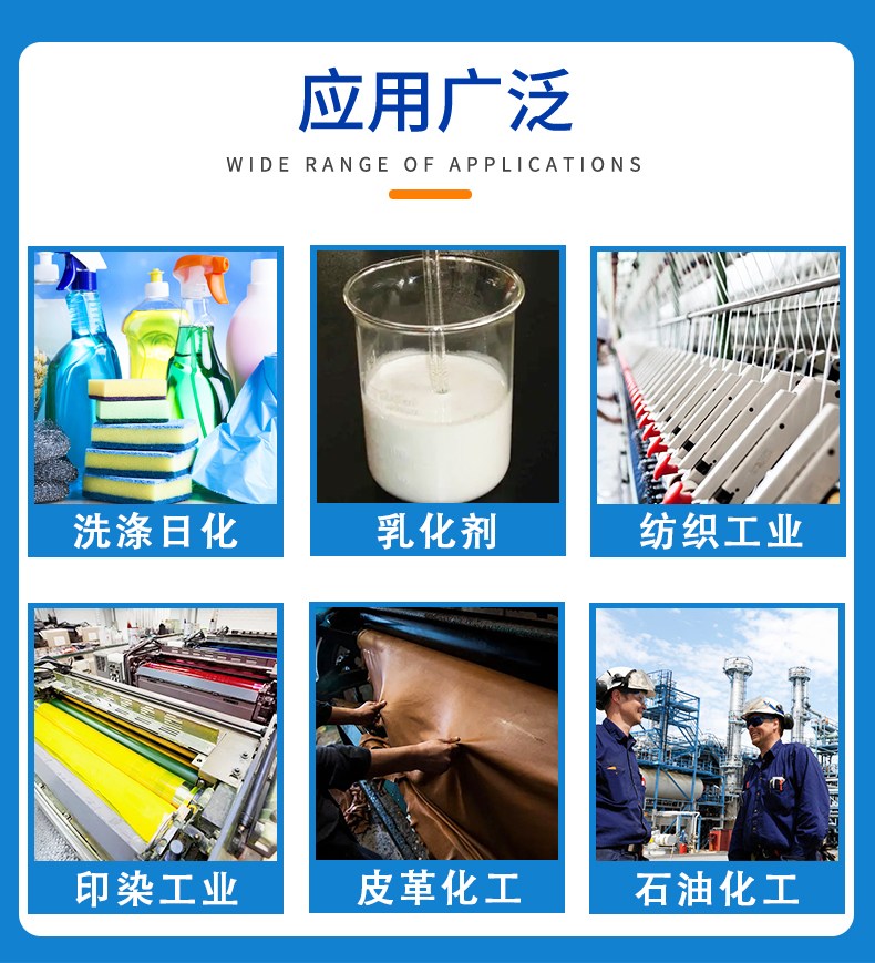 其他工业领域:在金属加工、橡胶、化工等行业中作为乳化剂、净洗剂使用。