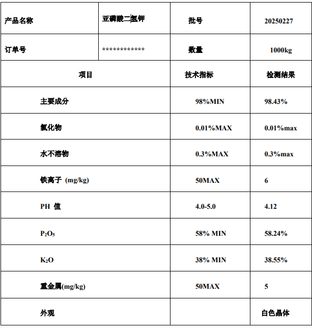 亚磷酸二氢钾 含量98% 白色结晶 农用钾磷肥 钙镁络合剂 水处理剂 cas13977-65-6