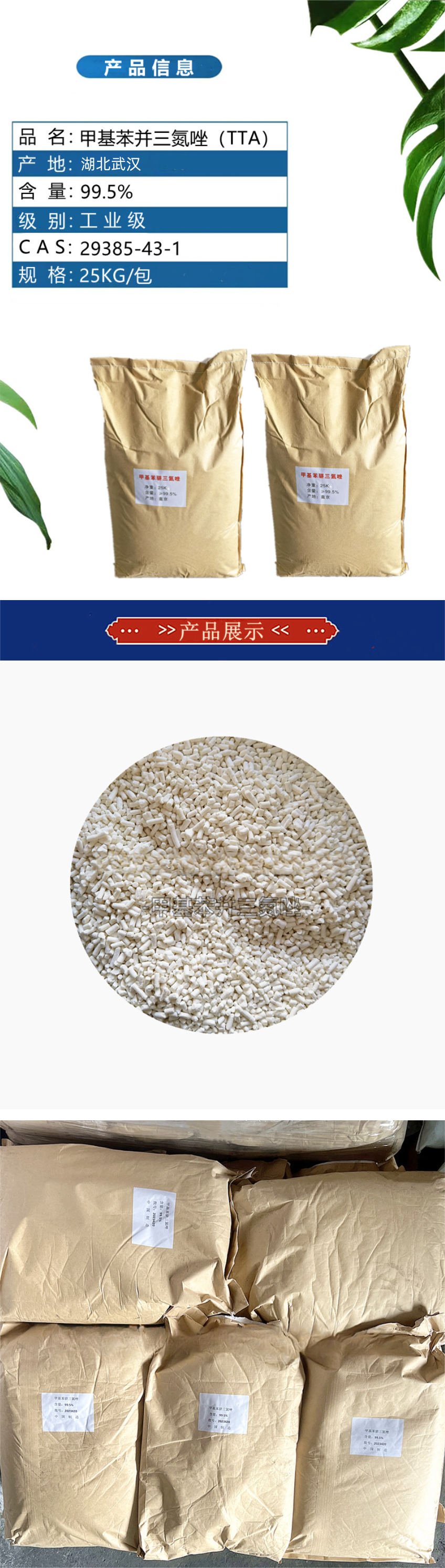 工业级甲基苯骈三氮唑通常为白色至类白色颗粒或粉末,纯度≥99%,难溶于水,便于在油基或有机体系中分散使用。