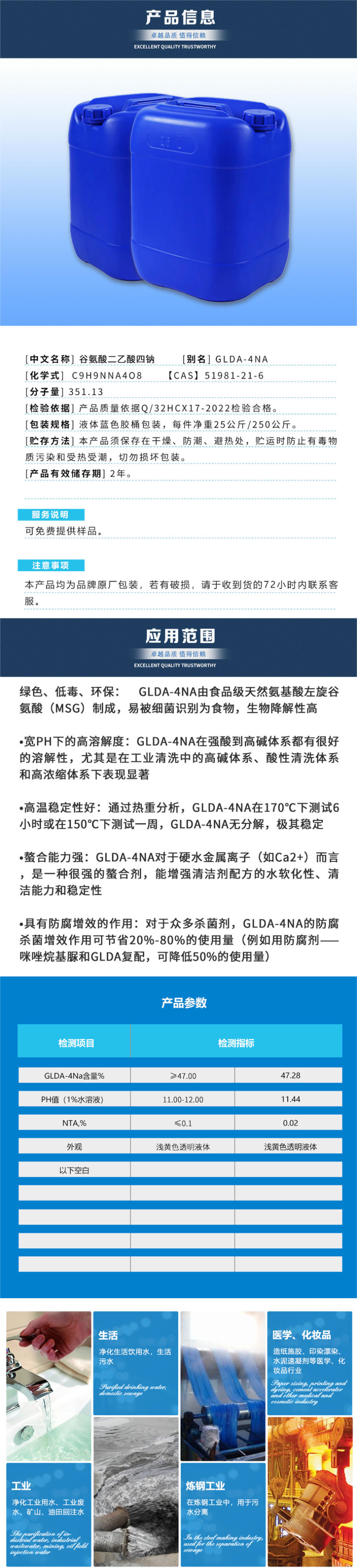 二羧甲基谷氨酸四钠GLDA-4NA 纯度47% 设备清洗剂 管道阻垢剂 cas51981-21-6
