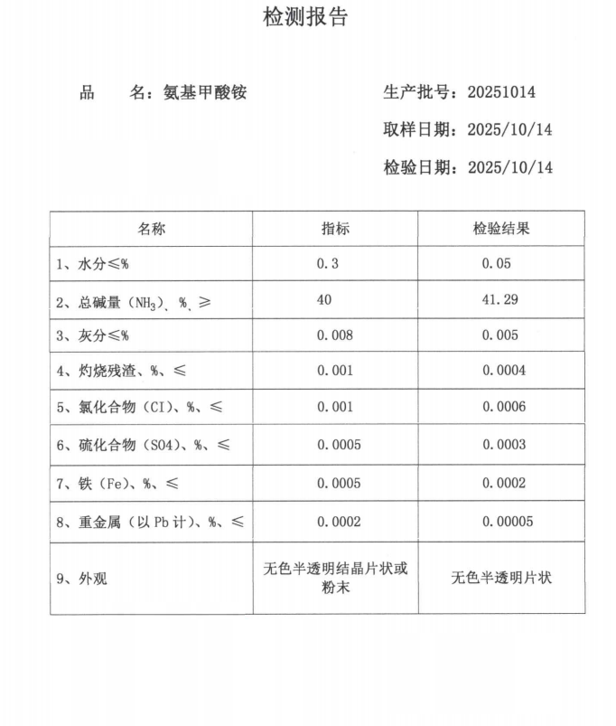 工业用途:是化学工业中尿素生产过程的中间产物。