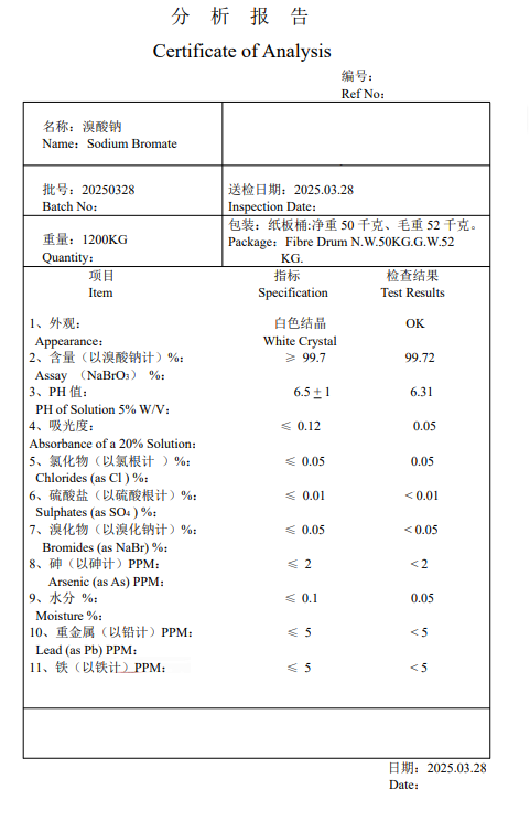 工业级溴酸钠(化学式 NaBrO?)是一种白色结晶性粉末,具有强氧化性,易溶于水但不溶于乙醇,其工业应用广泛,主要基于其氧化性和溴素生成能力。