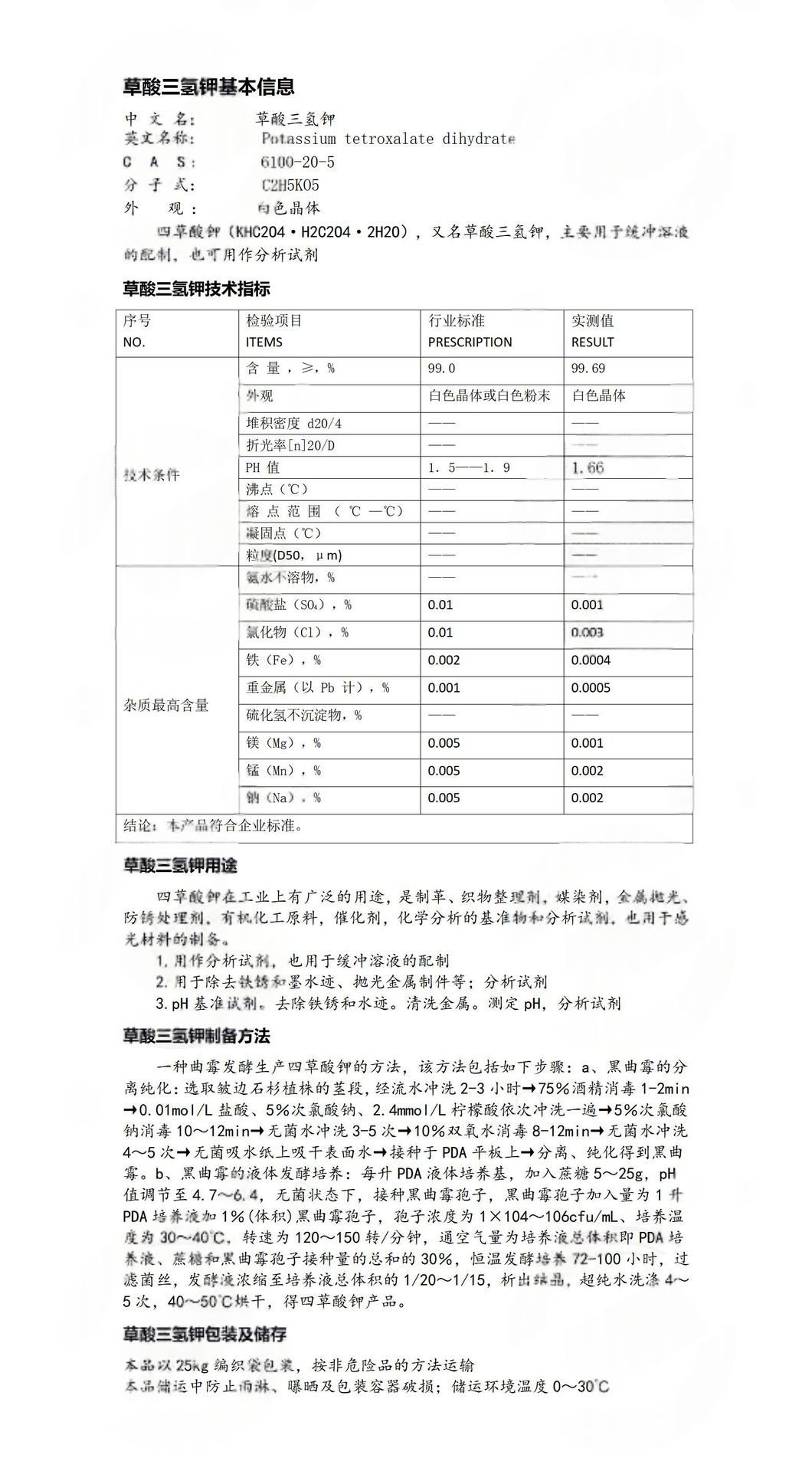 ,也称为四草酸钾,是一种化学物质,具有应用领域。以下是关于详细解释:
