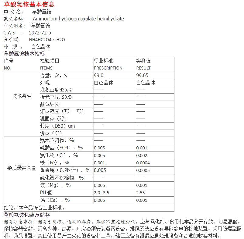 草酸氢铵(化学式C2H7NO5)是一种无机化合物,具有多种化学性质和广泛的应用领域。以下是其性质与用途的详细解析: 12