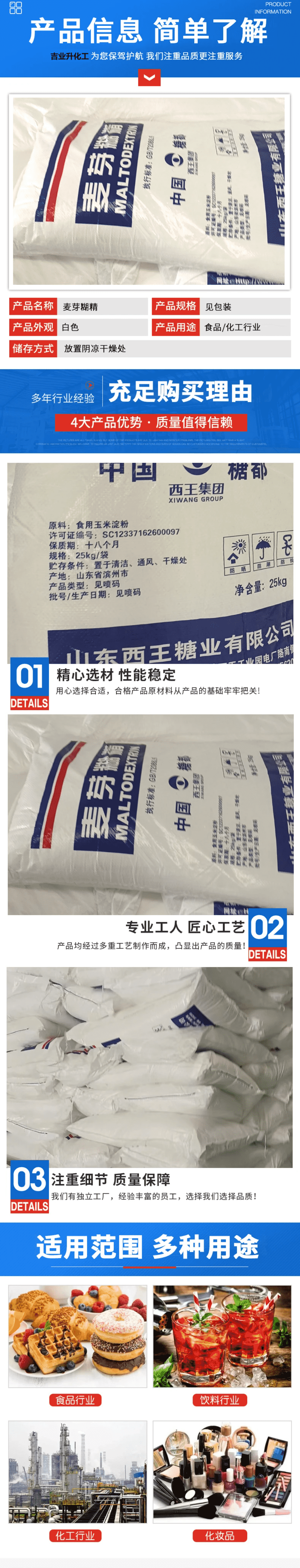 除了食品行业,还在糖果、饮料、方便面、造纸、化妆品等多个行业中得到应用。在方便面中,它可以作为调味料的载体;在造纸行业;在化妆品中,它可以作为保湿成分或填充剂。